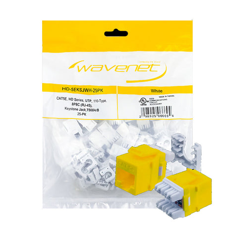 Wavenet Keystone Jack CAT5E, HD Series, UTP, 110, 8P8C,T568A/B, Yellow, 25PK