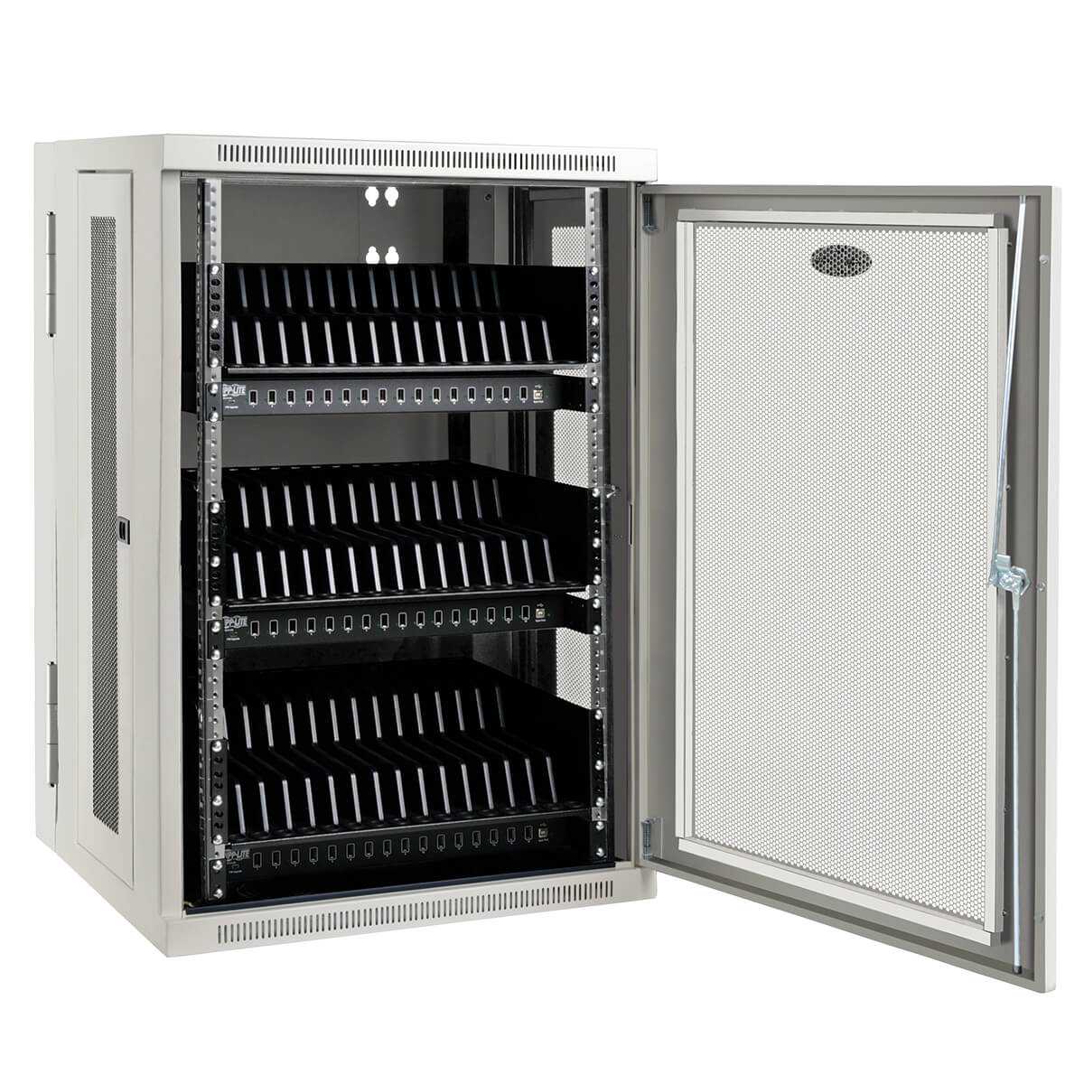 Locking steel cabinet provides 2.4A USB charging, syncing, secure storage and cord management for up to 48 tablets and other USB devices. Recommended for education, office, commercial, retail, industrial and healthcare environments.