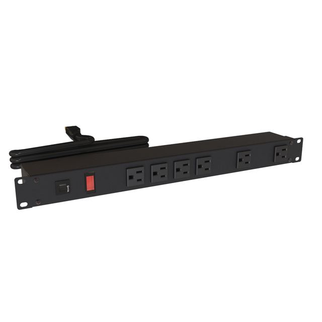 Hammond 1582 PDU (1P) 15A/125V FO (6) 5-15R P/5-15P 15ft BK