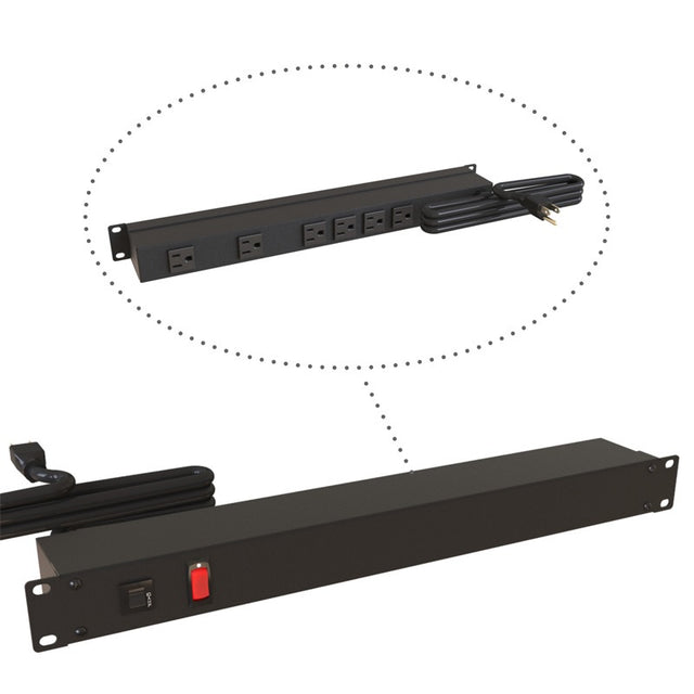 Hammond 1583 PDU 15A/125V (1P) Switch+Surge RO(6)5-15R P(5-15P) 6 ft BK