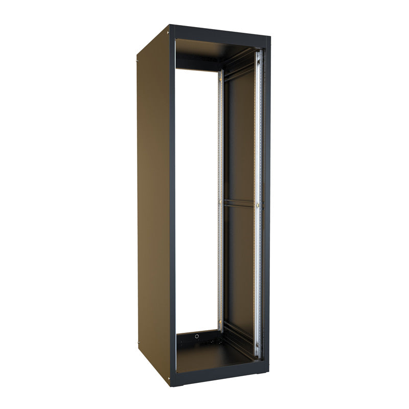 C-channel struts provide cabinet strength, ease, and flexibility to adjust mounting rails.